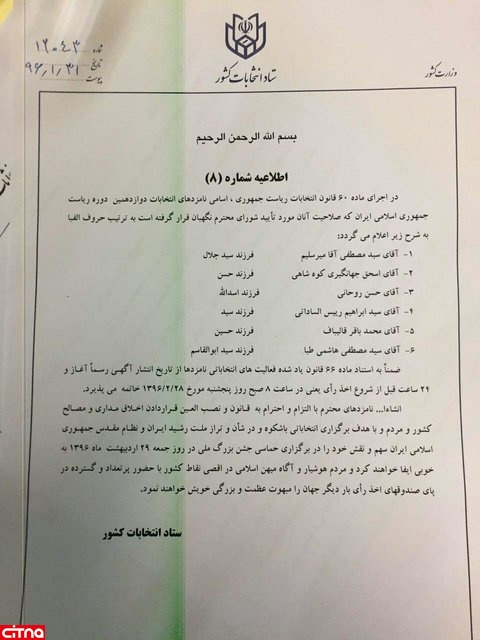 اعلام اسامی نامزدهای انتخابات ریاستجمهوری دوازدهم