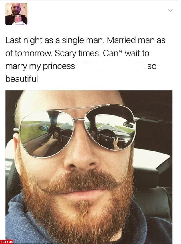 مرد جوانی یک روز قبل از عروسی اش در صفحه توئیترش عکسی سلفی از خودش منتشر کرد که برایش دردسر ساز شد.