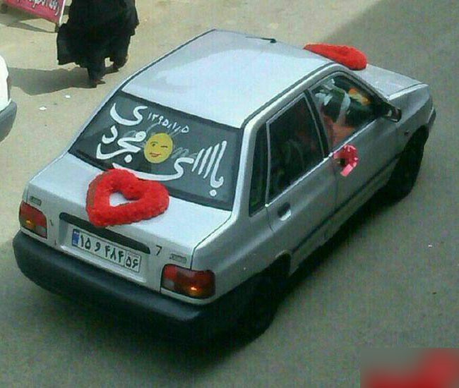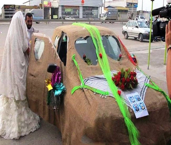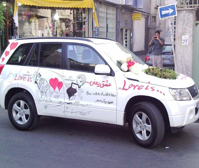 در این گزارش خودروهایی را می بینیم که به جای آن که فقط با گل تزیین شده باشند، هر کدام با اندکی خلاقیت زوج های جوان، آن ها را به شکلی متفاوت به خانه بخت می برند. ماشین هایی که حتا شاید ارزانتر از گل های گران قیمت تزیین شده اند ولی نظرها را بیشتر به خود جلب می کنند. برخی از زوج ها از پر، بعضی از نقاشی و برخی از آنها از خط زیبا برای تزیین ماشین خود استفاده کرده اند.