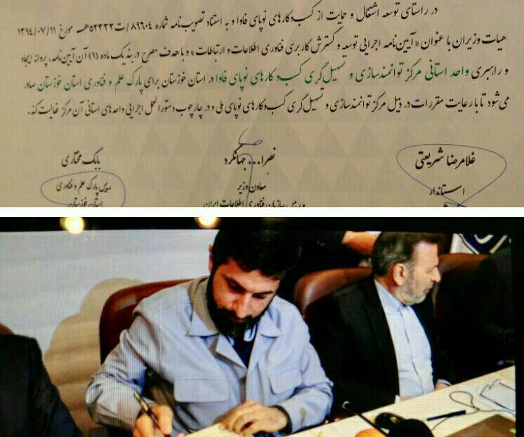امضاء پروانه مرکز توانمندسازی کسبوکارهای نوپای فاوا در خوزستان