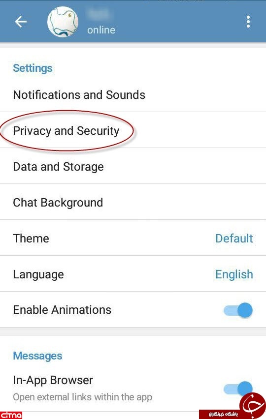 در مرحله بعد در محیط تلگرام به قسمت تنظیمات رفته و گزینه Privacy and Security را انتخاب کنید.