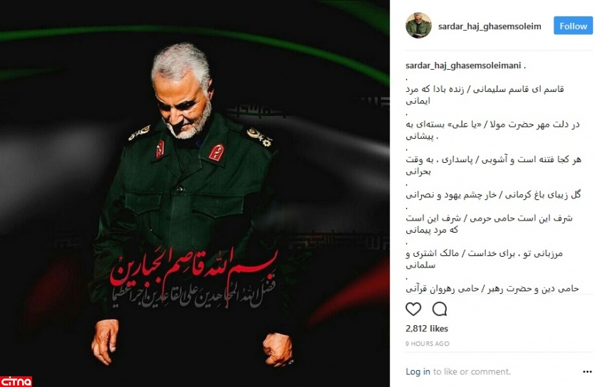 صفحهی اینستاگرام سردار قاسم سلیمانی به حادثهی تروریستی تهران، واکنش معناداری نشان داده است.