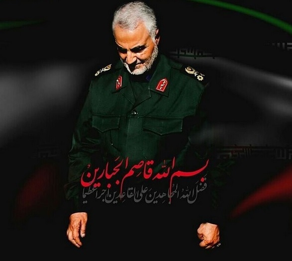 در این صفحه، ذیل عکسی از سردار سلیمانی، ذکر شده است که "بسم الله القاصم الجبارین: به نام خداوند درهم شکننده ستمگران".