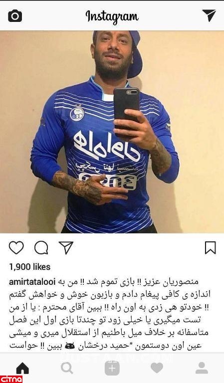 به گزارش سیتنا، تتلو در اینستاگرام خود نوشت: منصوریان عزیز ! بازى تموم شد ! من به اندازه کافى پیغام دادم و بازبون خوش و خواهش گفتم ! خودتو هى زدى به اون راه ! ببین آقاى محترم : یا از من تست میگیرى یا خیلى زود تو چند تا بازى اول این فصل متاسفانه بر خلاف میل باطنیم از استقلال میرى و میشى عین اون دوستمون حمید درخشان.