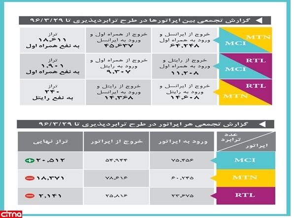 بر اساس این گزارش، همراه اول تاکنون ۱۸۶۱۱ مشترک بیش از ایرانسل و ۱۹۰۱ مشترک بیش از رایتل، از این دو اپراتور در فرایند ترابرد جذب کرده است.
