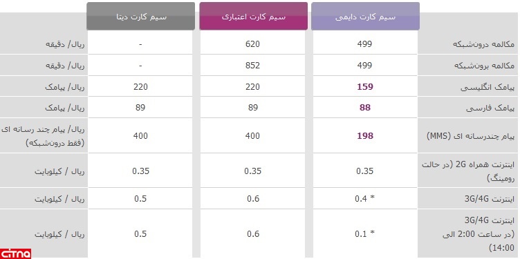 ارزانترین تعرفهی مکالمات درون شبکهی سیمکارتهای اعتباری