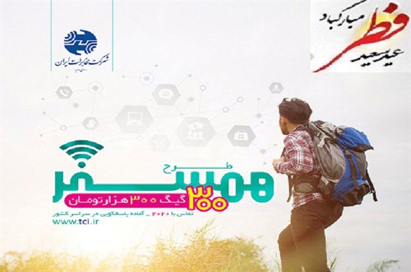 طرح ویژه مشترکین اینترنت پرسرعت همسفر شرکت مخابرات ایران با سرعت 16 مگابیت برثانیه، یک گیگا بایت، شش ماهه فقط 1500 تومان، به مناسبت سعید فطر از اول تیرماه آغاز شد.