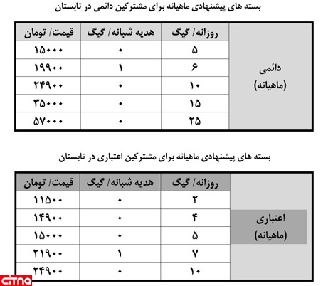 زمان ارائه این بسته ها از ۵ تیرماه لغایت ۳۱ شهریور ۹۶ است.