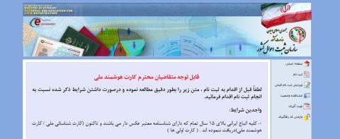 سایت سازمان ثبت احوال برای پیشثبتنام کارت هوشمند ملی