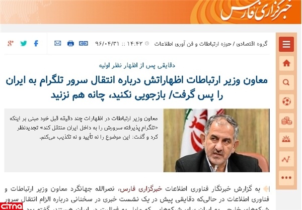 بنابراین احتمال قویای وجود داشت که مذاکرات قطعی ایران با تلگرام احتمالا به نتایجی رسیده که در سطح معاونان وزارت ارتباطات از آن اطلاع دارند اما شخصی آنچه که نباید را گفته است.