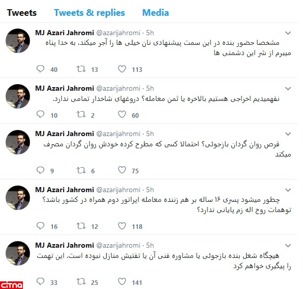 به گزارش سرویس وبگردی سیتنا، مهندس محمد جواد آذری جهرمی، وزیر پیشنهادی ارتباطات و فناوری اطلاعات، در واکنش به تخریبهای یک کانال تلگرامی معاند نظام، توئیتهای ذیل را منتشر کرد: