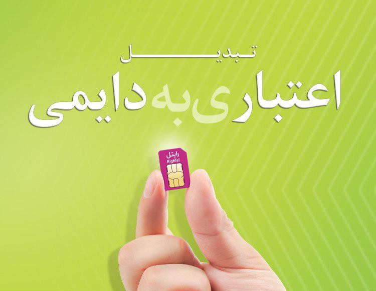 مشترکین اعتباری رایتل میتوانند با پرداخت تفاوت بهای سیمکارت دایمی نسبت به تغییر نوع سیمکارت خود را از اعتباری به دایمی اقدام کنند.
