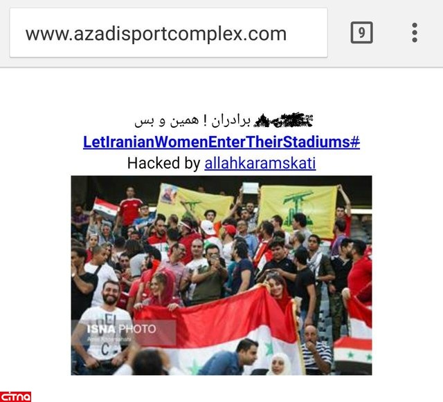 به گزارش سیتنا به نقل از ایسنا، بعد از اتفاقات شب گذشته (سهشنبه) در جریان بازی دو تیم ملی فوتبال ایران و سوریه که زنان ایرانی حق ورود به ورزشگاه را پیدا نکردند و در عوض زنان سوری به ورزشگاه رفتند، هکرها سایت ورزشگاه آزادی را هک کردند.