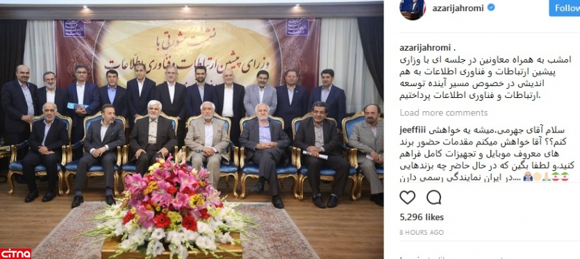 به گزارش سیتنا، مهندس محمد جواد آذری جهرمی، وزیر ارتباطات و فناوری اطلاعات دولت دوازدهم با انتشار عکسی در اینستاگرامش نوشت: