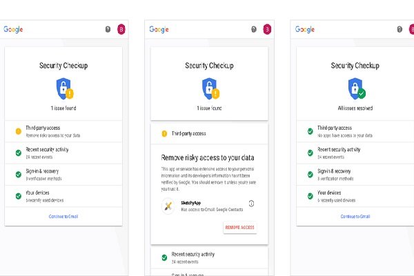 این امر به معنای حذف برخی خدمات امنیتی قبلی گوگل مانند نمایش علامت های کنترل سبز، زرد و قرمز برای تشریح میزان امنیت حساب های کاربری یا فرایند تایید حساب دومرحله ای نیست و صرفا تلاش شده تا کاربر بدون هیچ گونه پیچیدگی از مشکلات و حفره های حساب امنیتی خود در گوگل که ممکن است به افشای اطلاعات وی و سرقت آن توسط هکرها منجر شود، مطلع گردد.