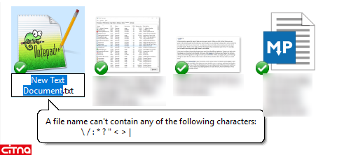 اگر به جای فایل GadgetNews logo بنویسیم GadgetNews/logo چه اتفاقی میافتد؟ در این صورت، ویندوز به صورت خودکار logo را به عنوان فایلی در فولدر GadgetNews شناسایی میکند. با دانستن این موضوع، اکنون قطعا میدانید که چرا ویندوز اجازه استفاده از چنین علائمی را نمیدهد.