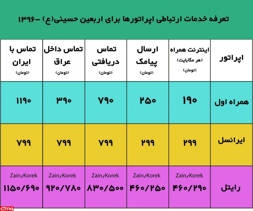 در نهایت به نظر می رسد با توجه به تعرفههای مقرون به صرفهی رایتل برای زائران اربعین حسینی و از آنجا که این اپراتور ارزانترین تعرفهی تماس دریافتی و ارزانترین تعرفهی تماس با ایران در عراق را ارائه داده است بیشتر از رقبا مورد توجه زائران اربعین حسینی برای برقراری ارتباطات در عراق قرار گرفته است.
