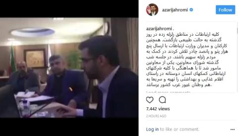 به گزارش سیتنا، وزیر ارتباطات و فناوری اطلاعات با انتشار فیلمی در اینستاگرام خود نوشت: