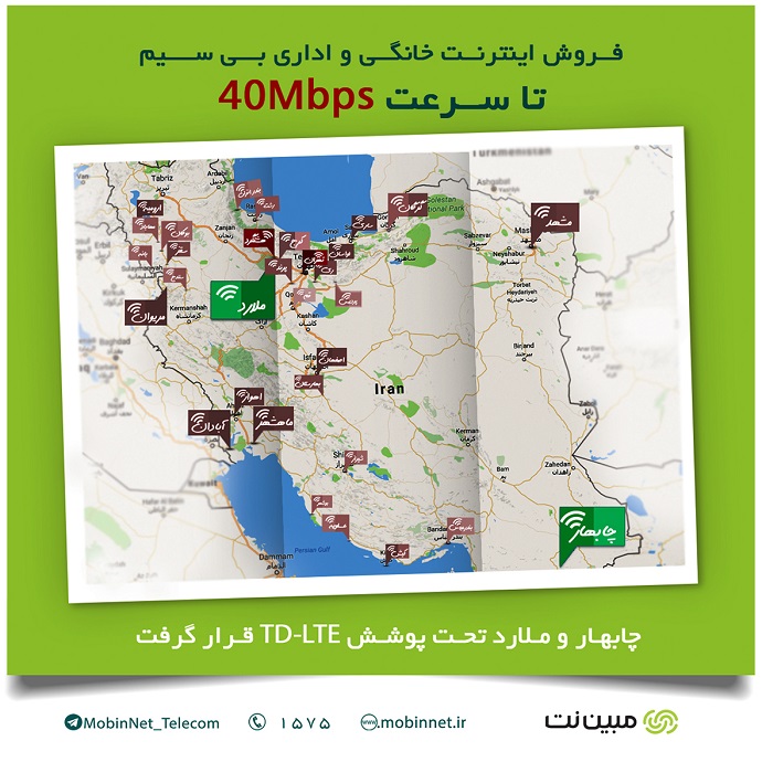 برای اطلاع از شهرهای تحت پوشش و کسب اطلاعات بیشتر میتوانید به وبسایت مبیننت به نشانی www.mobinnet.ir مراجعه نموده و یا با شماره تلفن سراسری 1575 تماس حاصل نمایید.