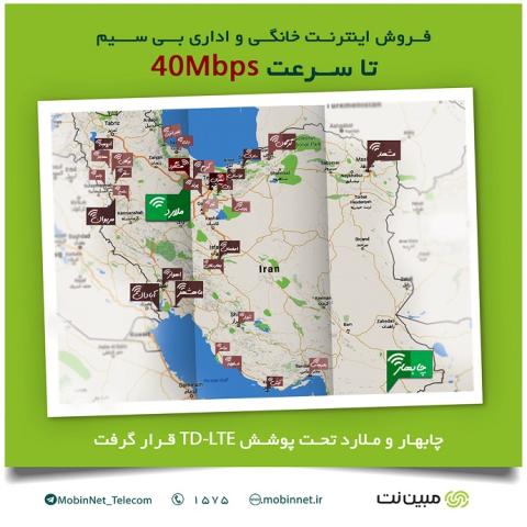 به گزارش سیتنا، در ادامهی روند توسعهی شبکهی TD-LTE، مبیننت این بار شهرهای چابهار از توابع استان سیستان و بلوچستان و ملارد از شهرهای حومهی تهران را هم تحت پوشش اینترنت پرسرعت بیسیم خود قرار داد.