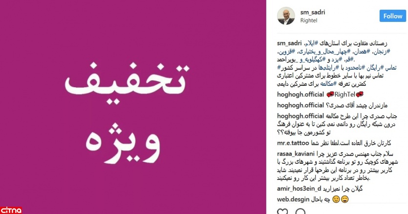 به گزارش سیتنا، مهندس سید مجید صدری، مدیرعامل رایتل در اینستاگرامش نوشت:
