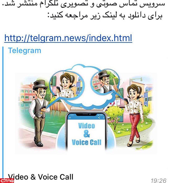 این بار هم یک پیام و یک لینک با مضمون سرویس تماس صوتی و تصویری تلگرام در حال گردش در گروه ها و کانال های این پیام رسان است. اما در این خصوص بد نیست به چند نکته توجه کنیم؛ اول اینکه پیام رسان تلگرام هرگونه به روز رسانی یا اضافه شدن سرویس جدیدی را تنها از طریق آپدیت نسخه اصلی خواهد پذیرفت، بنابراین دانلود یک برنامه فرعی تنها به نا امن شدن پیام رسان شما کمک خواهد کرد.