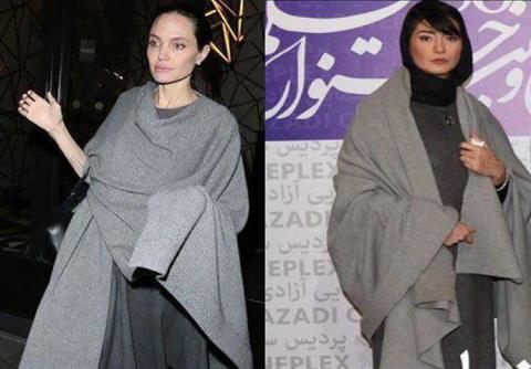نکته جالب این لباس مینا وحید شباهت بسیار زیاد آن یه لباسی است که آنجلینا جولی در عکسی بر تن دارد.