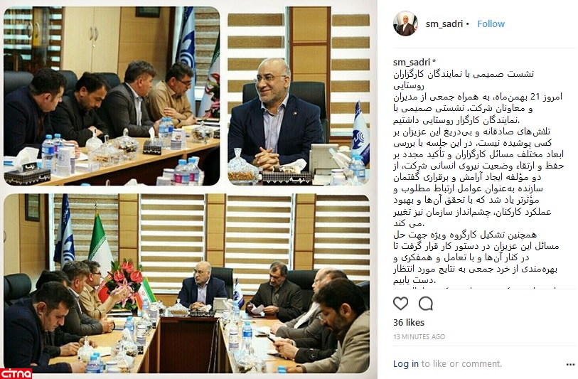 به گزارش سیتنا، مهندس سیدمجید صدری، مدیرعامل شرکت مخابرات ایران در مطلبی ذیل "نشست صمیمی با نمایندگان کارگزاران روستایی" در اینستاگرامش نوشت: