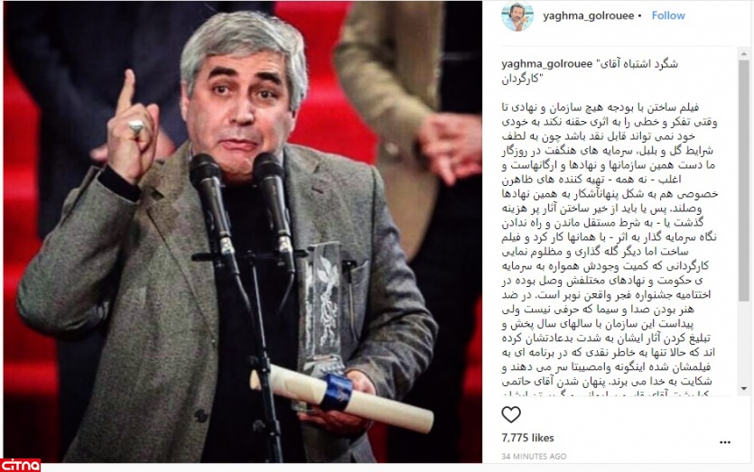 یغما گلرویی، ترانه سرا و شاعر کشور نیز به صحبتهای حاتمی کیا واکنش نشان داده است.