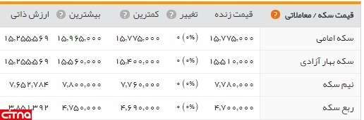 هر قطعه سکه بهار آزادی طرح امامی نیز یک میلیون و 577 هزار و 500،سکه طرح قدیم یک میلیون 551 هزار تومان،نیم سکه 778 هزار تومان و ربع سکه نیز 470 هزار تومان به فروش رفت.