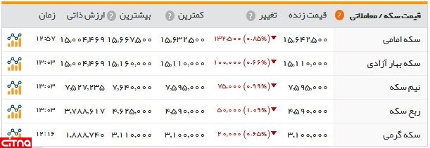 به این ترتیب، امروز در بازار هر قطعه سکه تمام بهار آزادی با قیمت یک میلیون و 511 هزار تومان، نیمسکه 759 هزار و 500 تومان، ربعسکه 459 هزار تومان و سکه یکگرمی 310 هزار تومان به فروش رفت.