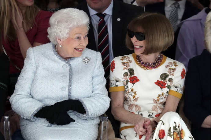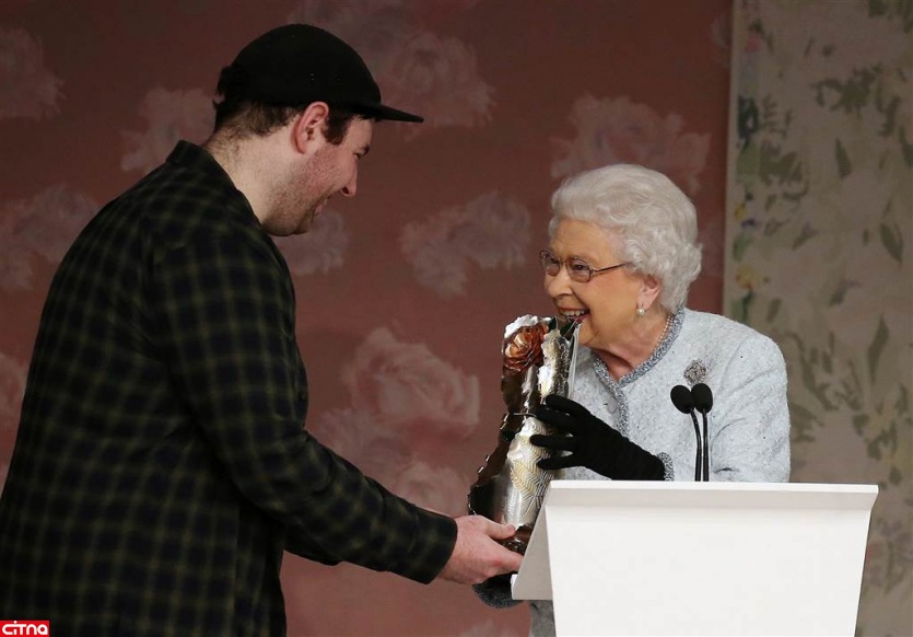 ملکه الیزابت کنار «آنا وینتور»، سردبیر مجله معتبر «ووگ» آمریکا نشست و سپس نخستین جایزه «ملکه الیزابت ۲» را که به طراحان خلاق اهدا می شود، به «کوئن» داد.