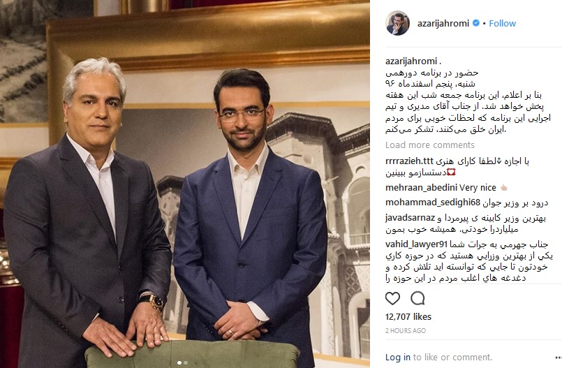 به گزارش سیتنا، مهندس آذری جهرمی در اینستاگرامش نوشت: