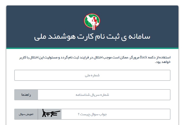 سایت ثبت نام کارت هوشمند ملی
