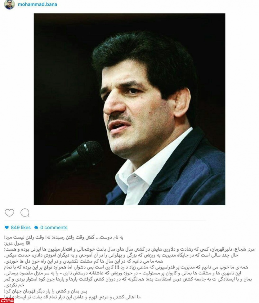 حمایت اینستاگرامی محمد بنا از رسول خادم