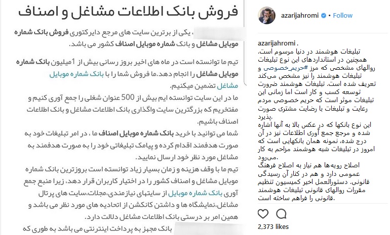 به گزارش سیتنا، مهندس آذری جهرمی نوشت: