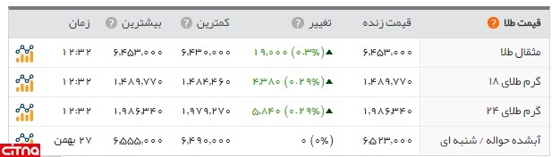هر گرم طلای 18 عیار هم 148 هزار و 977 تومان شد.