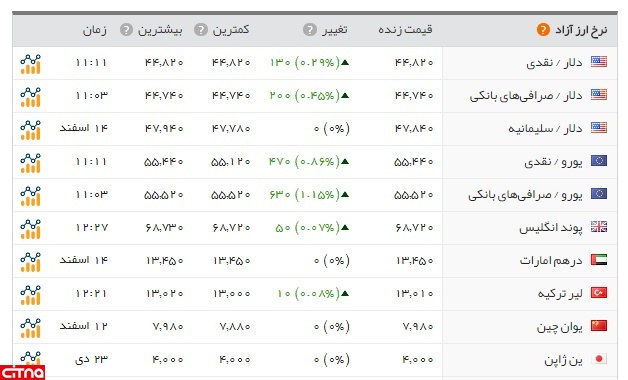 یورو پنج هزار و 552 تومان، پوند انگلیس شش هزار و 872 تومان و لیر ترکیه هزار و 301 تومان نرخ گذاری شد.