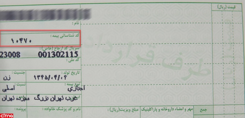 نکته: کد شناسایی بیمه را میتوان از صفحه اول دفترچه تامین اجتماعی بخش مشخص شده یا از طریق صفحات دیگر دفترچه با عنوان"کد شناسایی بیمه" مشاهده و استفاده نمود.