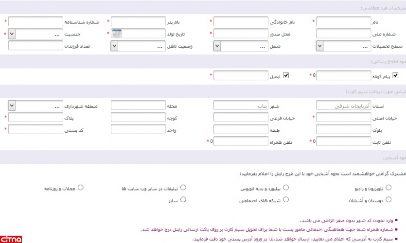 بسته پستی سیمکارت و محصول خریداری شده به آدرسی که در این قسمت وارد می نمایید، ارسال خواهد شد. لذا از صحت اطلاعات در قسمت" نشانی جهت دریافت سیمکارت" اطمینان حاصل نمایید.