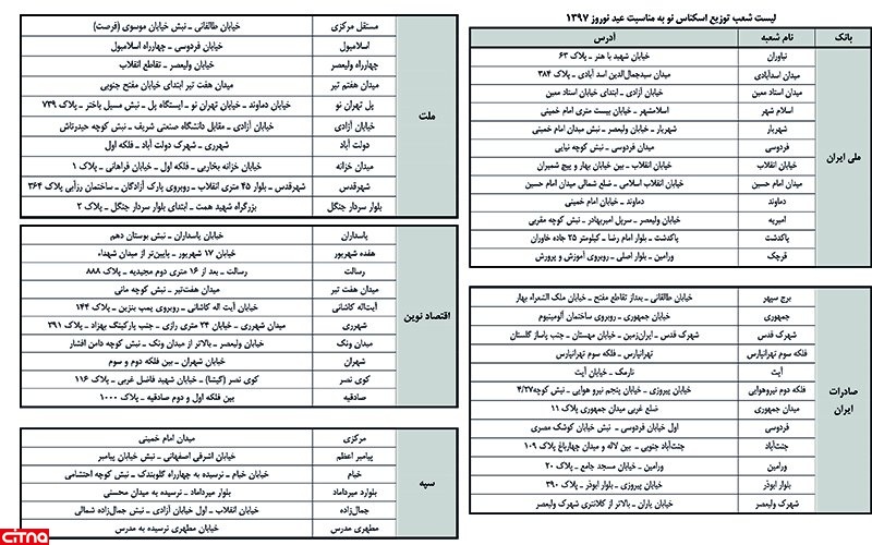 معرفی بانک های توزیع کننده اسکناس نو به مناسبت عید نوروز