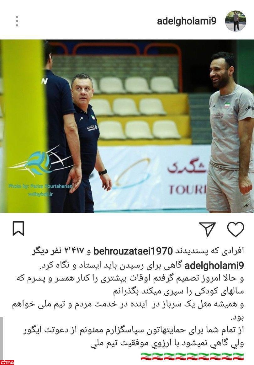 عادل غلامی ملی پوش سرشناس والیبال با انتشار پستی از بازی های ملی خداحافظی کرد.