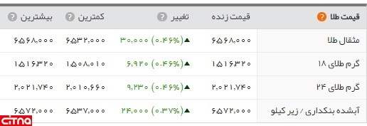 در بازار طلا با وجود کاهش نرخ اونس در بازار جهانی، هر مثقال طلا با سه هزار تومان افزایش به 656 هزار و 800 تومان رسید. به دنبال افزایش قیمت مثقال، هرگرم طلای 18 عیار هم 151 هزار و 632 تومان به فروش رفت.