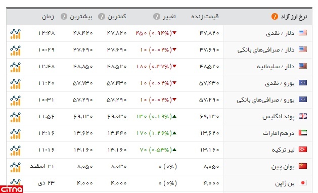 دلار آمریکا بر خلاف روز گذشته کاهش یافت و به قیمت 4 هزار و 782 تومان رسید.
