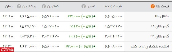 هر گرم طلای 18 عیار هم 152 هزار و 717 تومان شد.