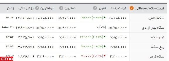 نیم سکه با 17 هزار تومان افزایش قیمت 785 هزار تومان فروخته شد و همچنین ربع سکه با نه هزار تومان افزایش قیمت 495 هزار تومان شد.