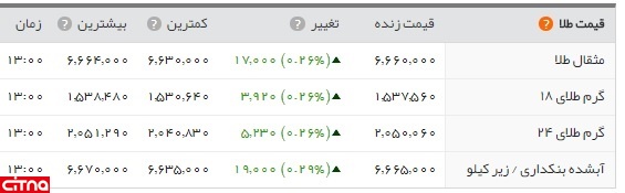 در بازار طلا، مثقال 664 هزار تومان و هر گرم طلای 18 عیار 153 هزار تومان بود.