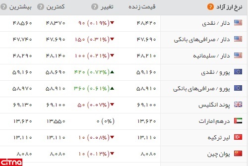 قیمت ها امروز در بازار ارز،افزایشی بود. هر دلار آمریکا امروز در بالاترین معامله به چهار هزار و 856 تومان رسید. دلار صرافی های بانکی چهار هزار و 769 تومان قیمت خورد و دلار برای عرضه در بازار سلیمانیه نیز 4819 تومان معامله شد.