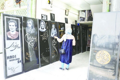نگاهی به سنگقبرهای داخل مغازهها میاندازم چهرههای آشنا بر روی سنگقبرها زیاد است، عکس افراد مشهوری که بعضی از آنها زندهاند، میپرسم آیا این سنگقبرها واقعی است، شما برای افراد زنده هم سنگقبر میزنید؟