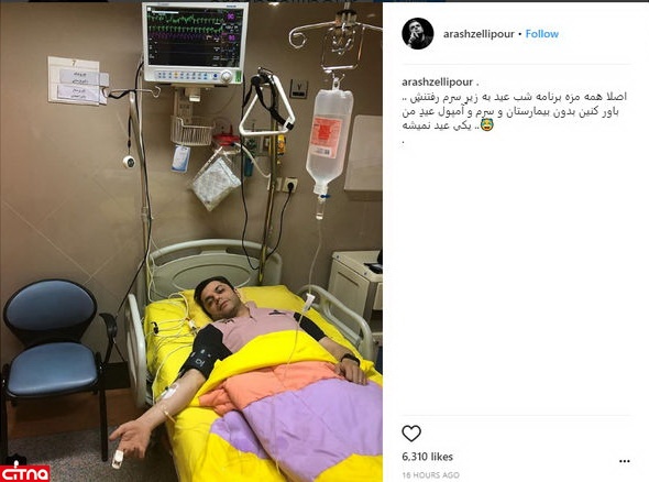عکسی از آرش ظلی پور زیر سرم در اینستاگرام